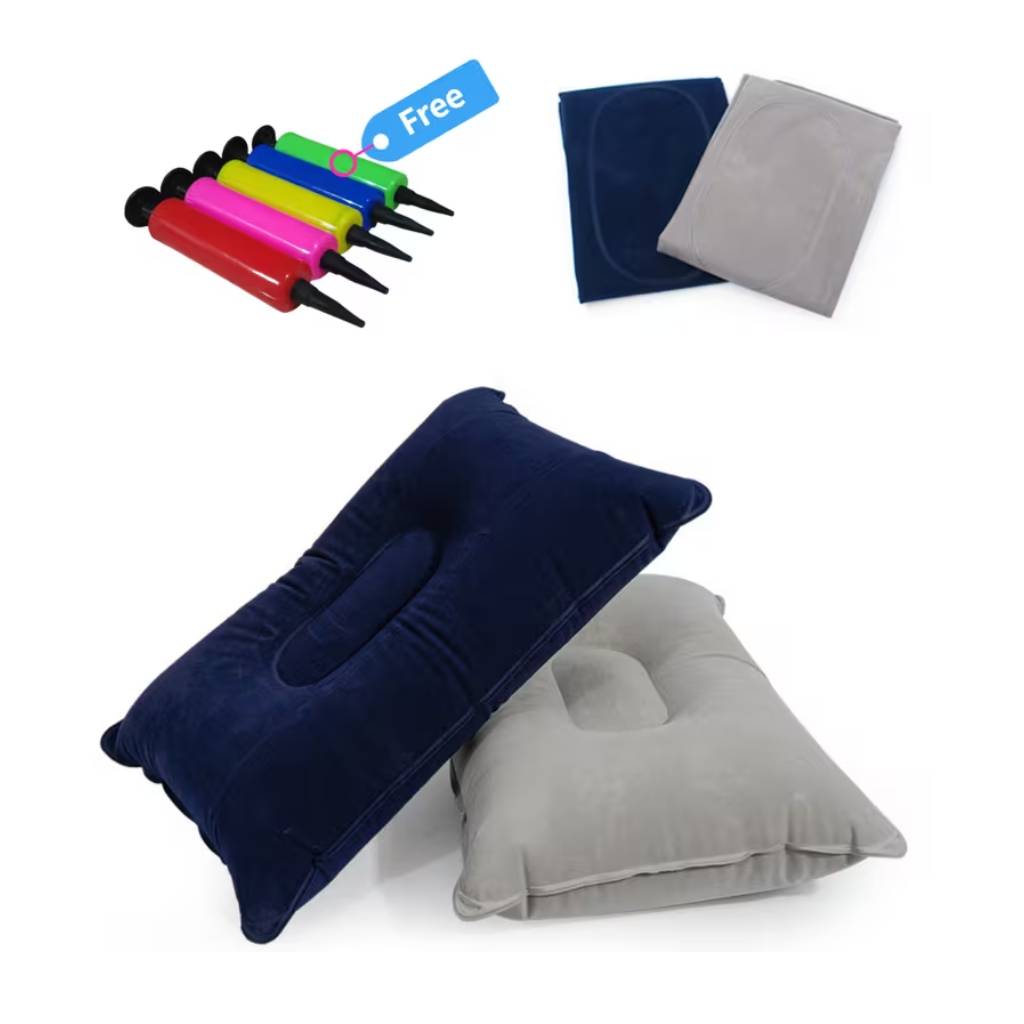 Πρακτικό σετ με 2 πτυσσόμενα μαξιλάρια ταξιδιού που προσφέρουν άνεση και στήριξη σε κάθε μετακίνηση. Φουσκώνουν εύκολα με την ενσωματωμένη τρόμπα και ξεφουσκώνουν γρήγορα για εύκολη αποθήκευση. Είναι ελαφριά, συμπαγή και ιδανικά για ταξίδια με αεροπλάνο, αυτοκίνητο, τρένο ή για χρήση στο κάμπινγκ. Όταν δεν χρησιμοποιούνται, διπλώνουν εύκολα ώστε να μεταφέρονται χωρίς να πιάνουν χώρο στις αποσκευές σας.