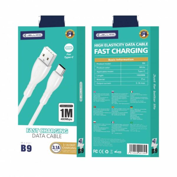 Καλώδιο Φόρτισης Δεδομένων Jellico B9 Data Cable Type-C – White