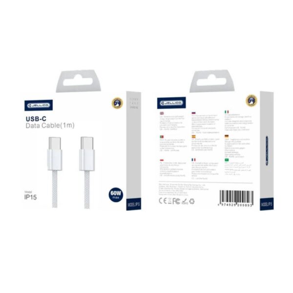 Καλώδιο Φόρτισης Δεδομένων Jellico IP15 Type C – Type C – White