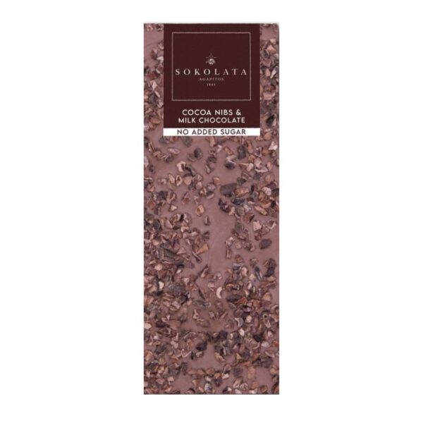 Agapitos No Added Sugar Milk Chocolate & Cocoa Nibs 55gr