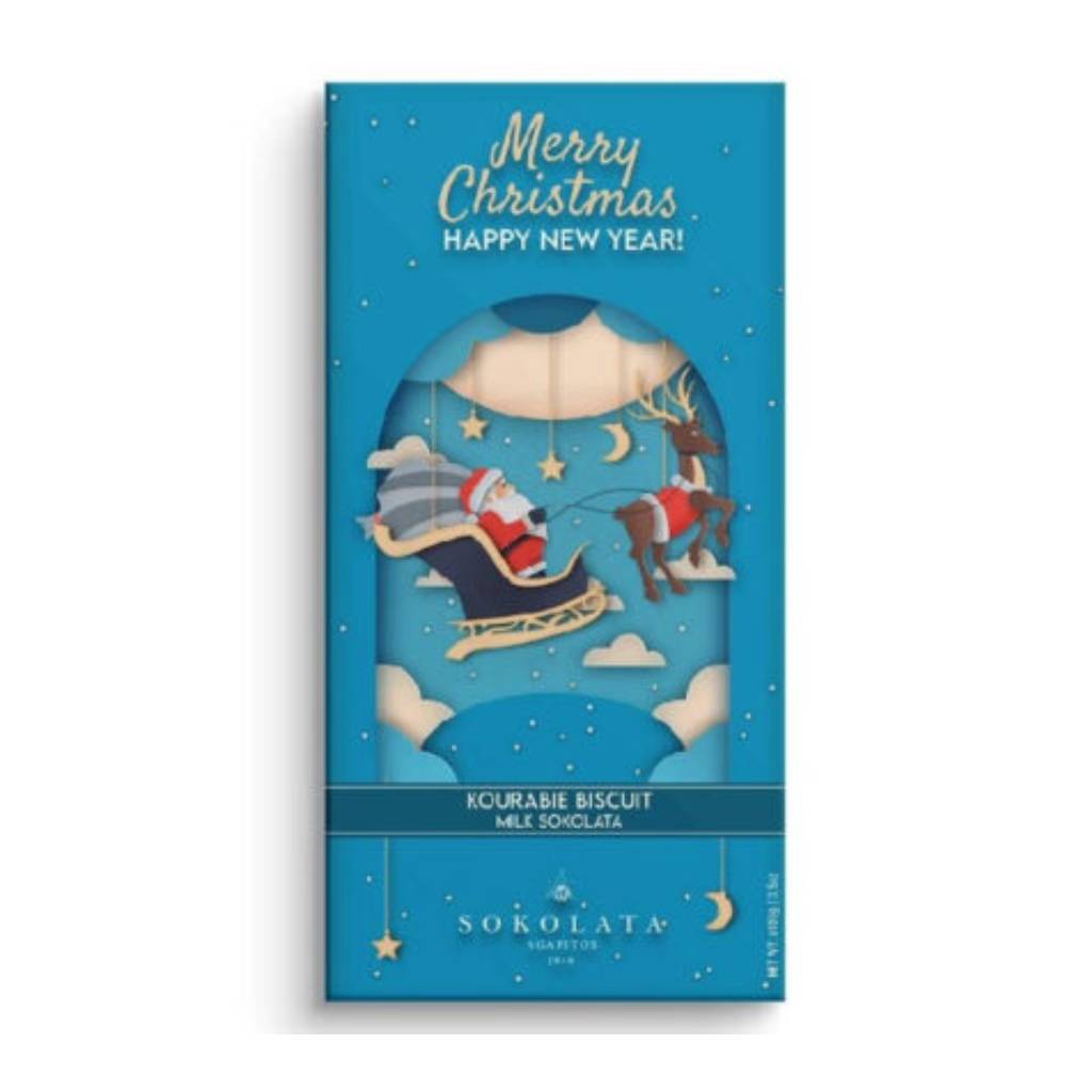 Κλασική γιορτινή γεύση σε σοκολατένια εκδοχή! Η Agapitos Kourabie Biscuit Milk Chocolate συνδυάζει βουτυράτα κουραμπιεδάκια με βελούδινη σοκολάτα γάλακτος, δημιουργώντας μια χειροποίητη ελληνική απόλαυση γεμάτη αρώματα και γιορτινή διάθεση. Ιδανική για δώρο ή για γλυκές στιγμές τις γιορτές.